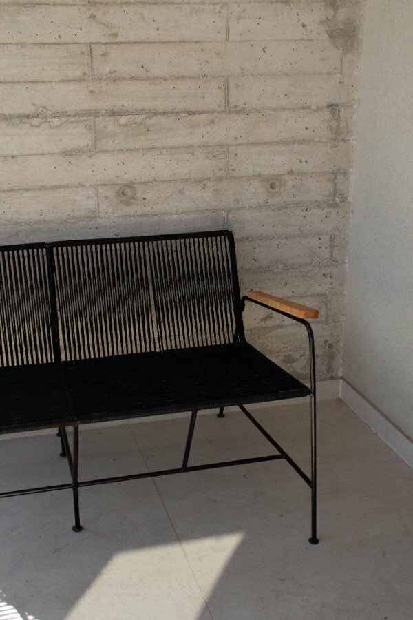 Materiales: Caño macizo redondo de 1/2 pintado al horno y tejido con cordon simil yute